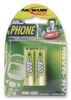 BATTERY, NIMH AA 800MAH DECT, PK2 Battery Size Code: AA Battery Capacity: 800mAh Battery Voltage: 1.2V Battery Technology: Nickel Metal Hydride External Diameter: 14.3mm External Height: 50.3mm Weight: 20g Battery Terminals: Raised RoHS Compliant: Yes